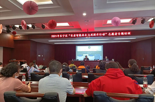 在上海这个老龄化严重的城市,为了解决老年人在运用智能技术方面遇到的困难.根据2021年市民政局发布的<关于“开展100万人次长者智能技术运用能力提升行动”的工作方案>,上海市长宁区虹桥街道综合为老服务中心作为长者智能技术运用能力提升行动培训点.