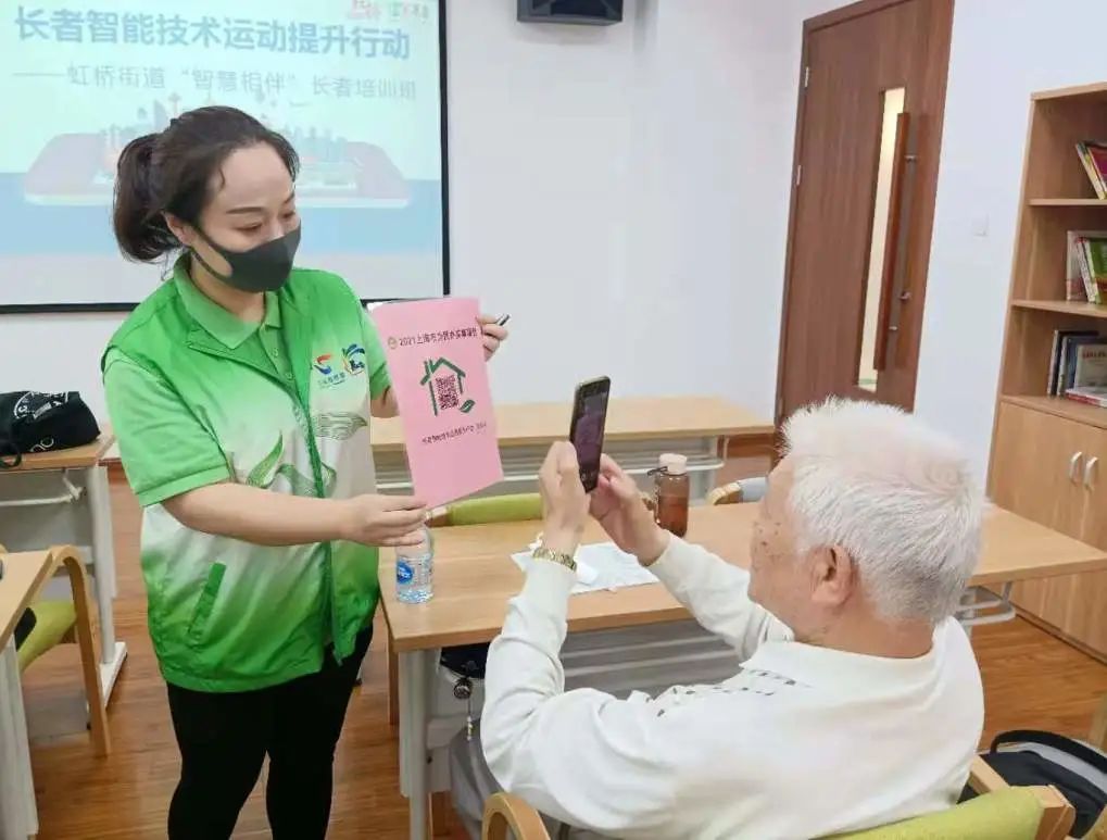 在上海这个老龄化严重的城市,为了解决老年人在运用智能技术方面遇到的困难。根据2021年市民政局发布的《关于“开展100万人次长者智能技术运用能力提升行动”的工作方案》,上海市长宁区虹桥街道综合为老服务中心作为长者智能技术运用能力提升行动培训点。
