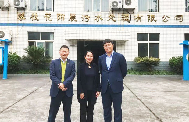 2021年12月4日上午,四川阳晨环境投资有限公司董事长汪健南及总裁何晓生深入清香坪污水处理厂检查指导工作,厂长陈碧烟陪同并听取相关指示.