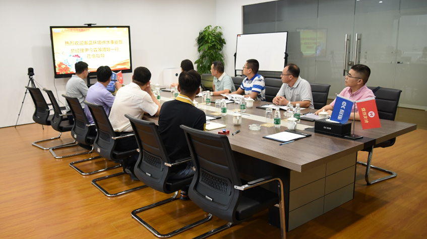 7月21日,瀚蓝环境股份有限公司供水事业部总经理尹今霖,瀚蓝环境股份有限公司何明志、麦锦欢,佛山市南海里水水务有限公司陈志文,佛山市南海大沥水务有限公司刘灼其领导一行莅临管康参观交流,管康总经理贾健热情接待。