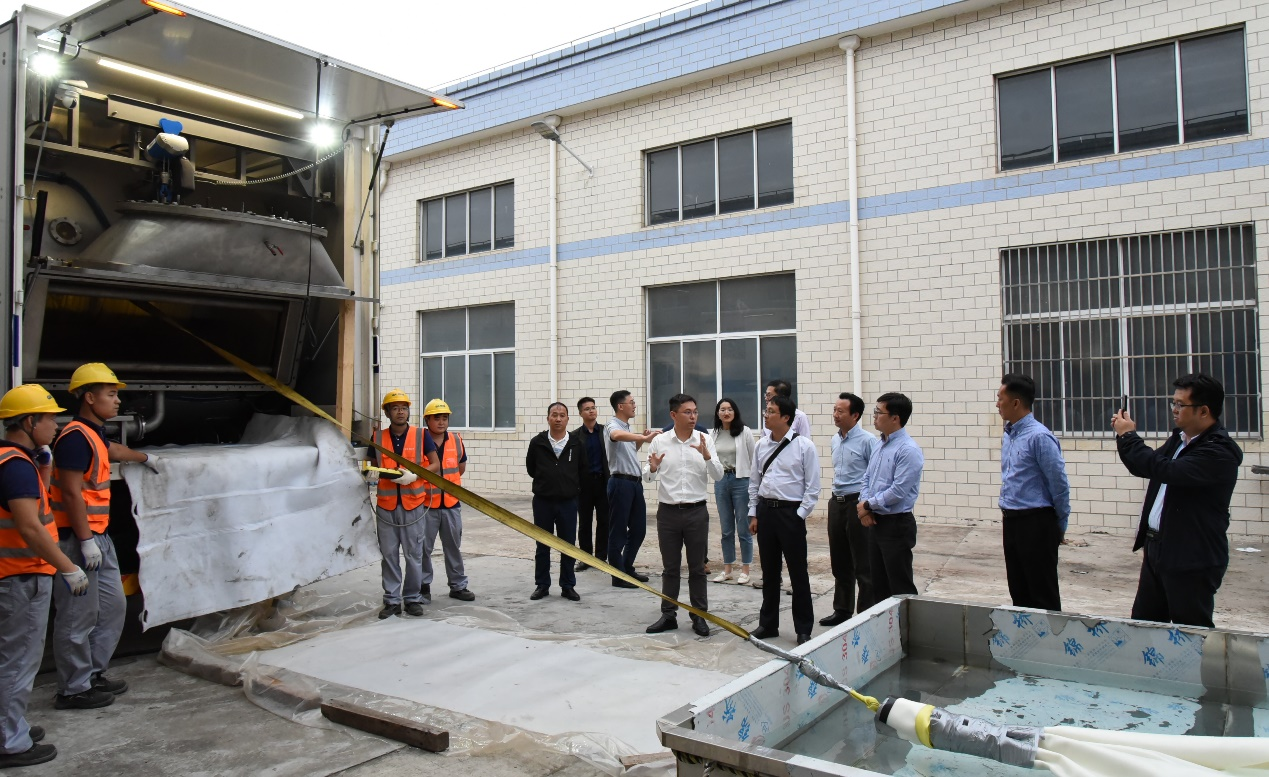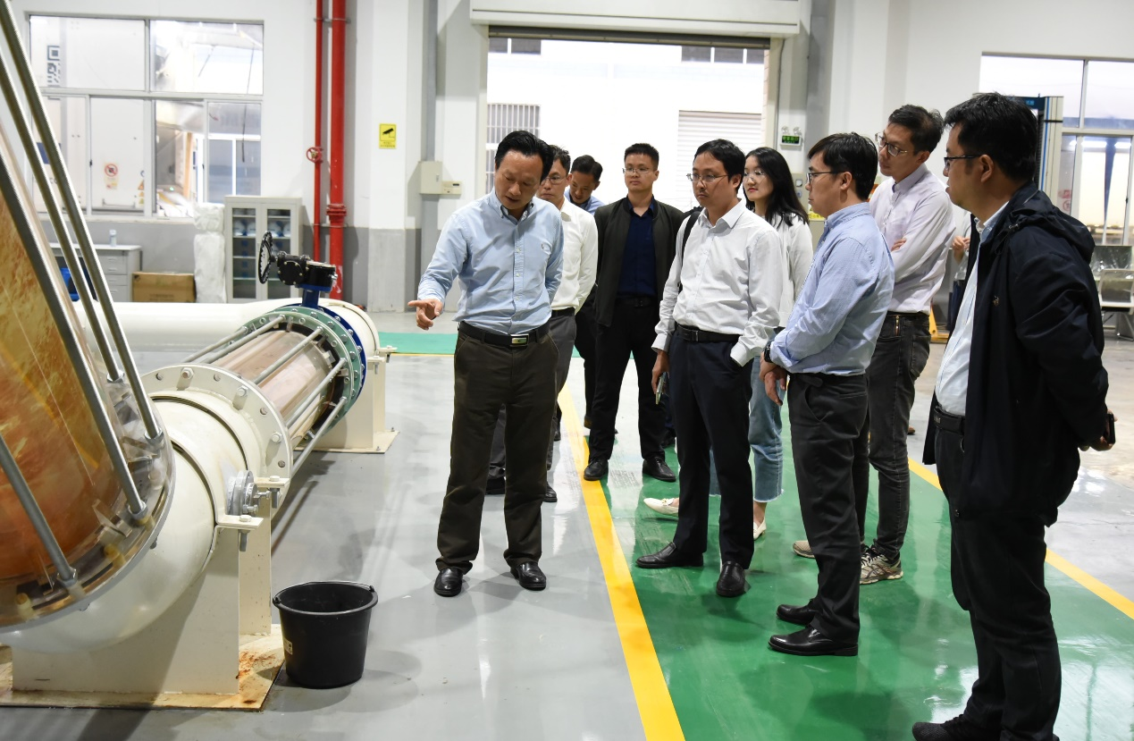 管康技术经理刘林带领客人们参观管康设备研发基地,详细介绍了供水管道“二元全结构”修复工艺、供水管道“结构增强型热固化”修复工艺、工程装备和带压检测技术。