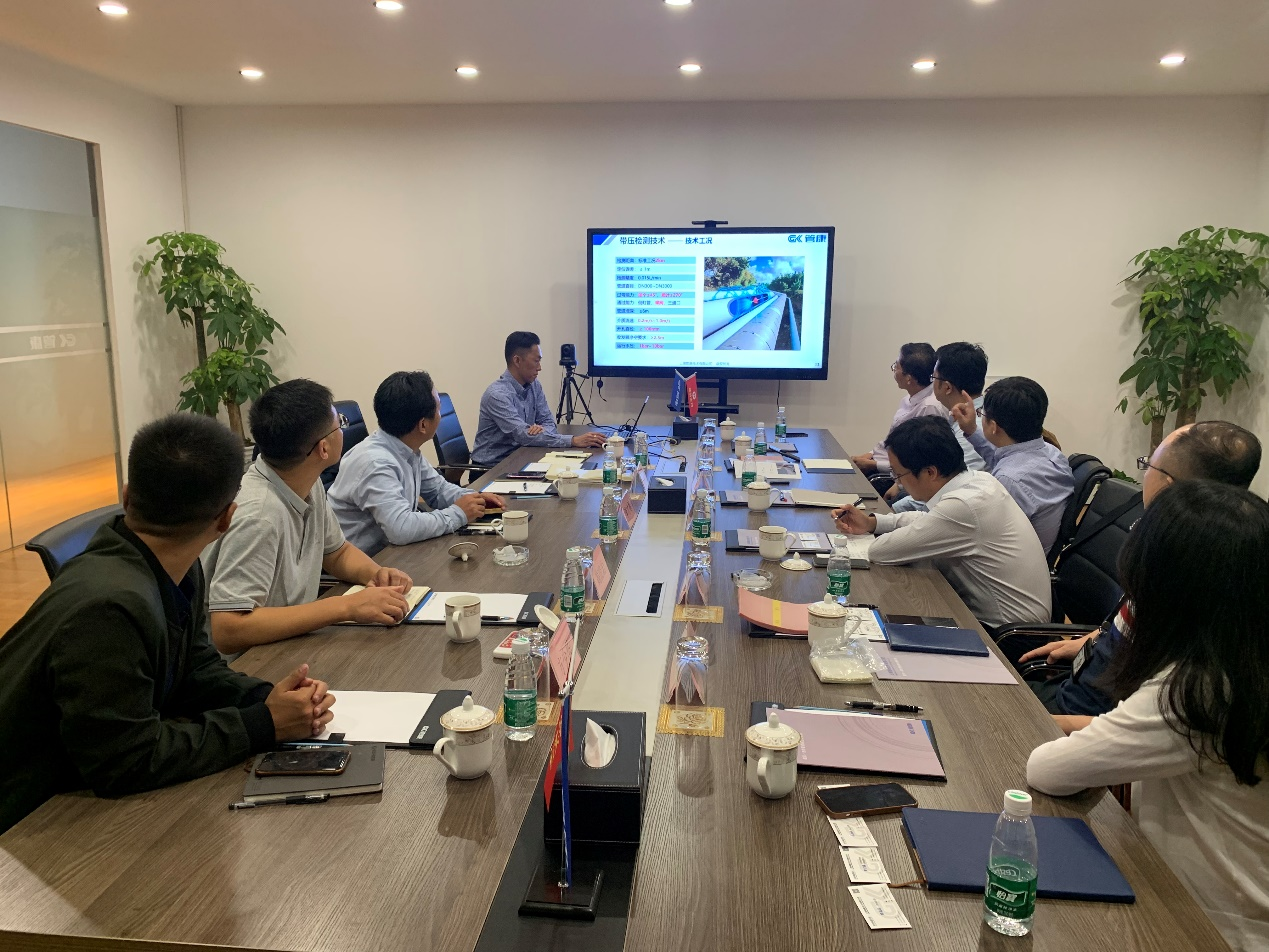 管康副总经理李才禧为客人们讲解了供水管道检测评估和供水管网全生命周期的运维理念,解答一行人提出的各种疑问。
