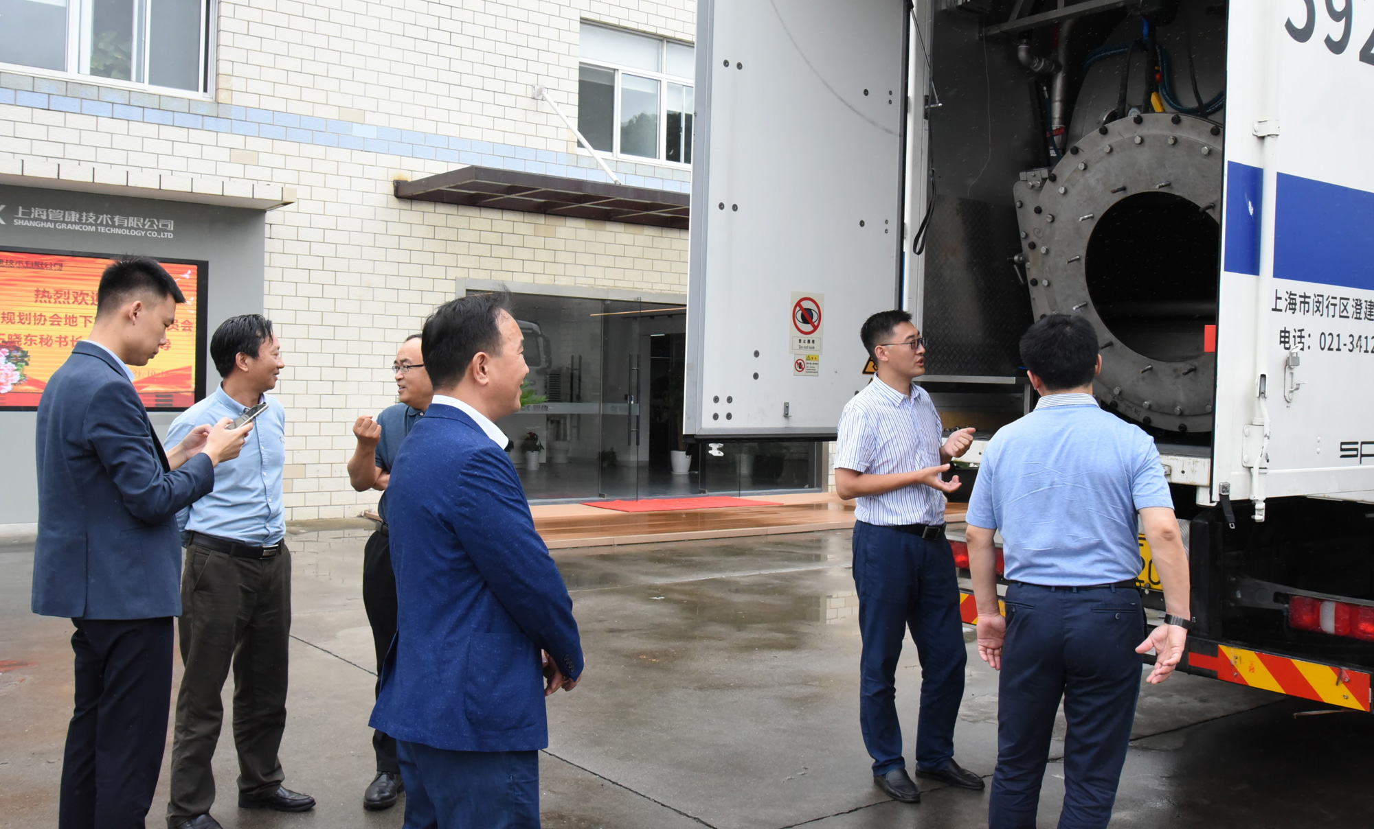 管康副总经理李才禧带领众访客参观管康,详细介绍了供水管道“二元全结构”修复工艺、供水管道“结构增强型热固化”修复工艺和带压检测技术。