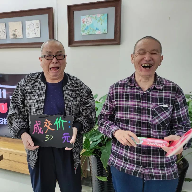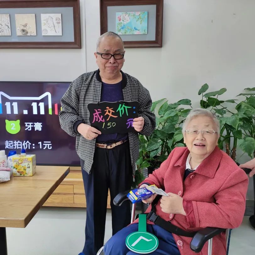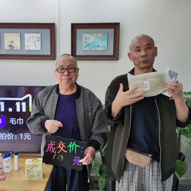 双十一拍卖会在爷爷奶奶的欢声笑语中落下了帷幕,熟悉的买卖场景唤起长者从前的记忆,不同的购物方式,又让长者有了新的体验,通过愉快又激烈的拍卖活动,提升了长者的注意力,同时又增强长者的计算能力。