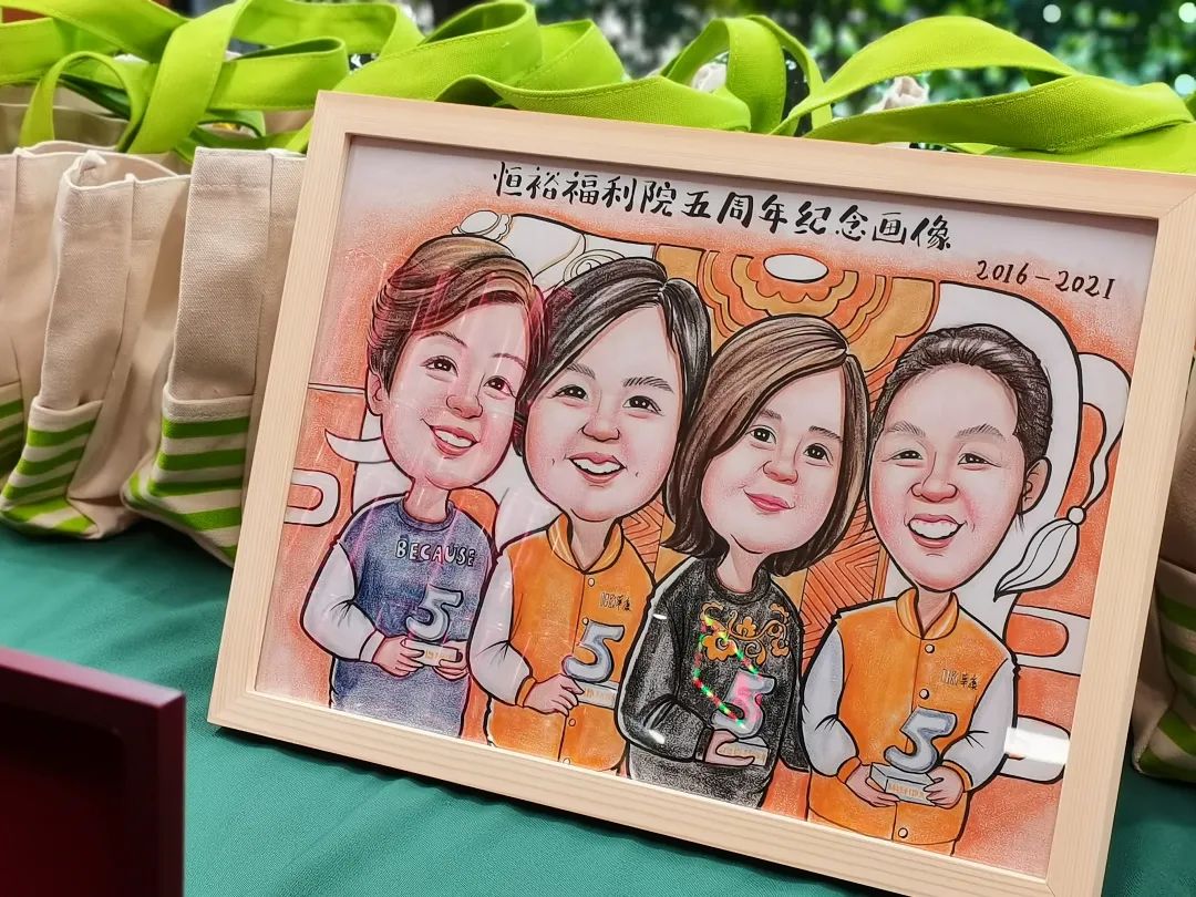 值得一提的是,我们还为这四位员工定制了专属漫画像,福利院是一个其乐融融的大家庭,愿我们朝夕相伴,不负相遇,不负时光。