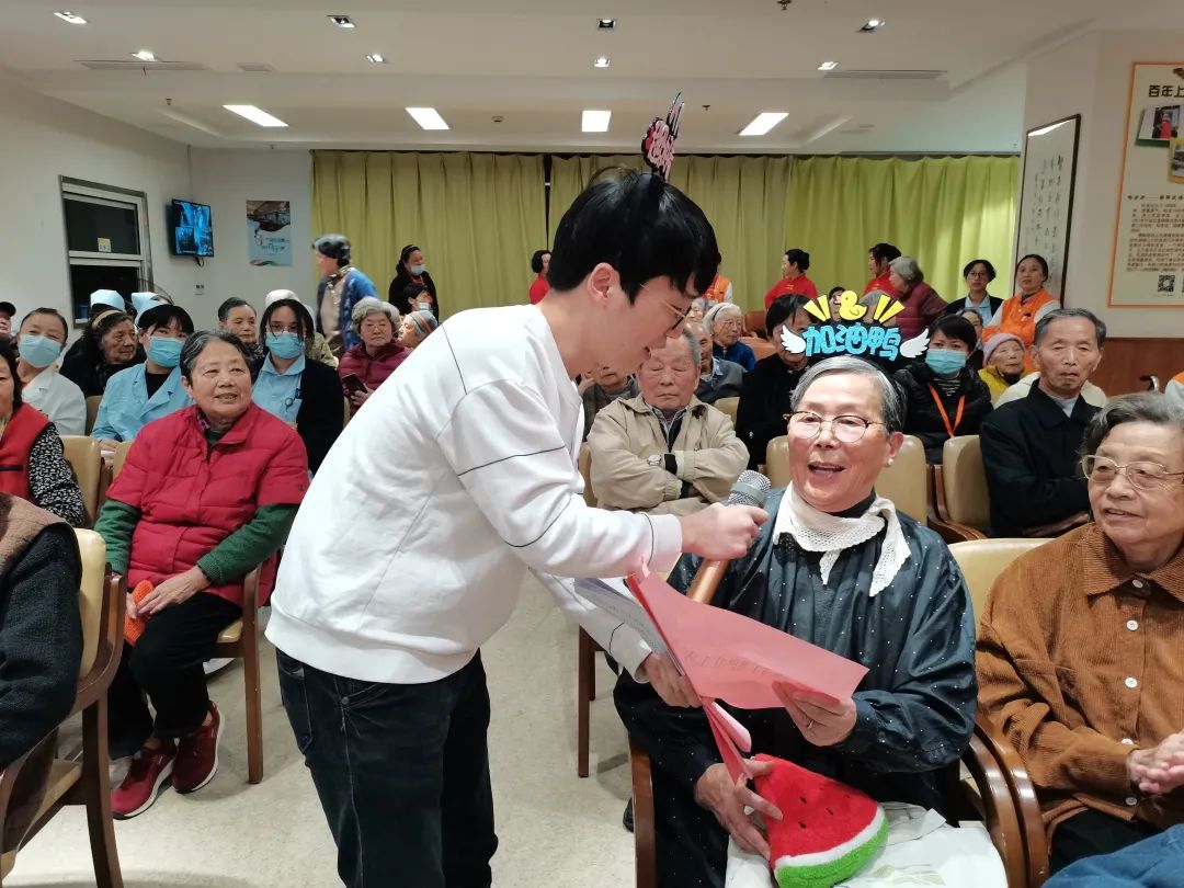 在首个互动环节——击鼓传花的游戏中,随着音乐声的戛然而止,长者与员工们分别表演了节目,同时我们也送上了精美的小礼品。