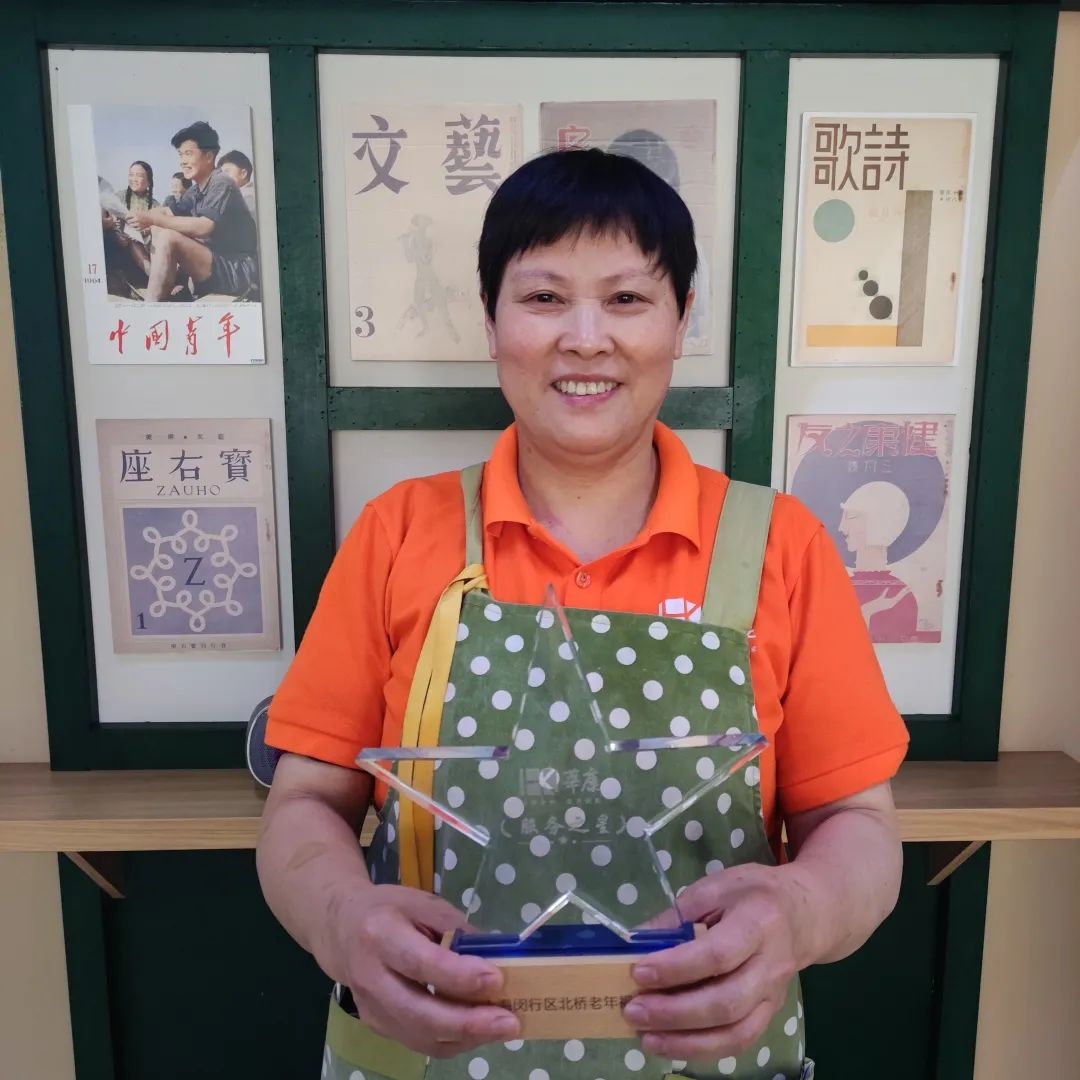 刘阿姨是北桥福利院的老员工,从建院之初就来到北桥,作为单元的护理员刘阿姨悉心的照顾每一位长者,把每一位爷爷奶奶当做自己的家人,从不叫苦从不说累。成为单元组长后,刘阿姨更是将自己的经验和总结毫无保留的传授给新员工,做好新护理员的带教等工作。成为大组长后,每天都能看到她在现场穿梭处理各种情况的身影。