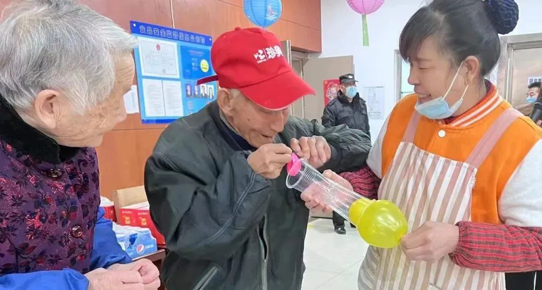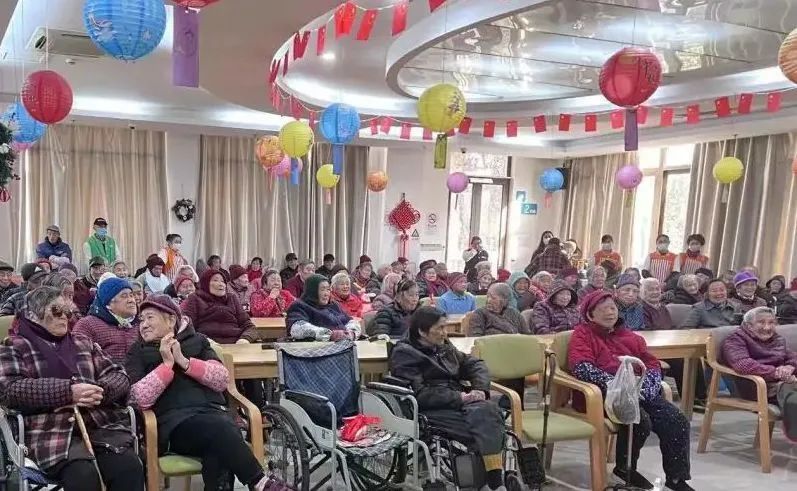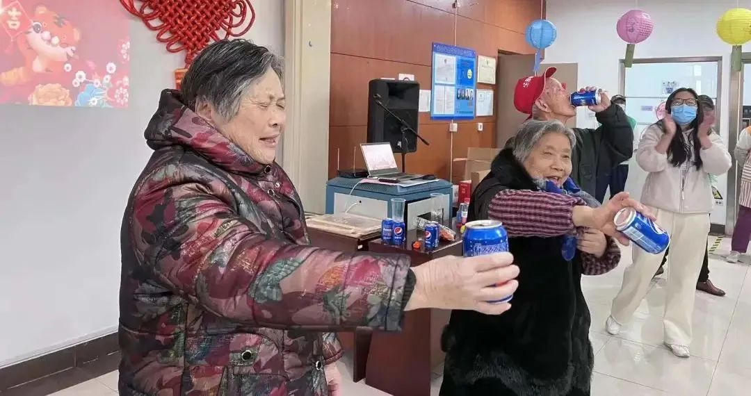 每位爷爷奶奶都怀揣着对新年的祝福与期待前来参加了此次“庆元旦·迎新春”活动。他们的脸上都洋溢着新年的喜悦,活动现场任何角落都能听到欢声笑语。院里连廊再次挂起了红彤彤的连串灯笼,每一位经过的爷爷奶奶都说:“好漂亮呀!”