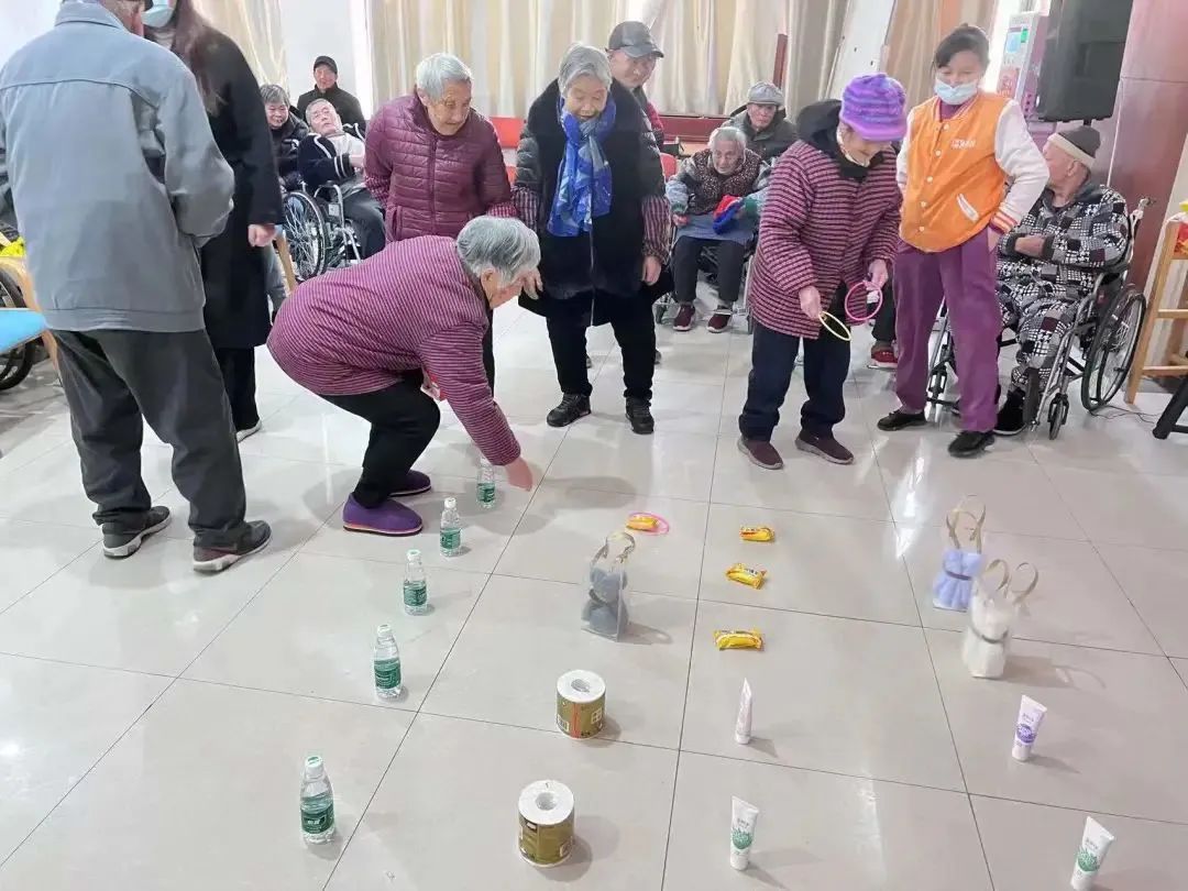 套圈圈可是我们院里的王牌节目,我们在室内和室外同时进行,爷爷奶奶们都超级喜欢参加,每位到场的爷爷奶奶都能凭着自己的“实力”夺得奖品,可谓是奖品拿到手软,幸福感爆棚的一项游戏。