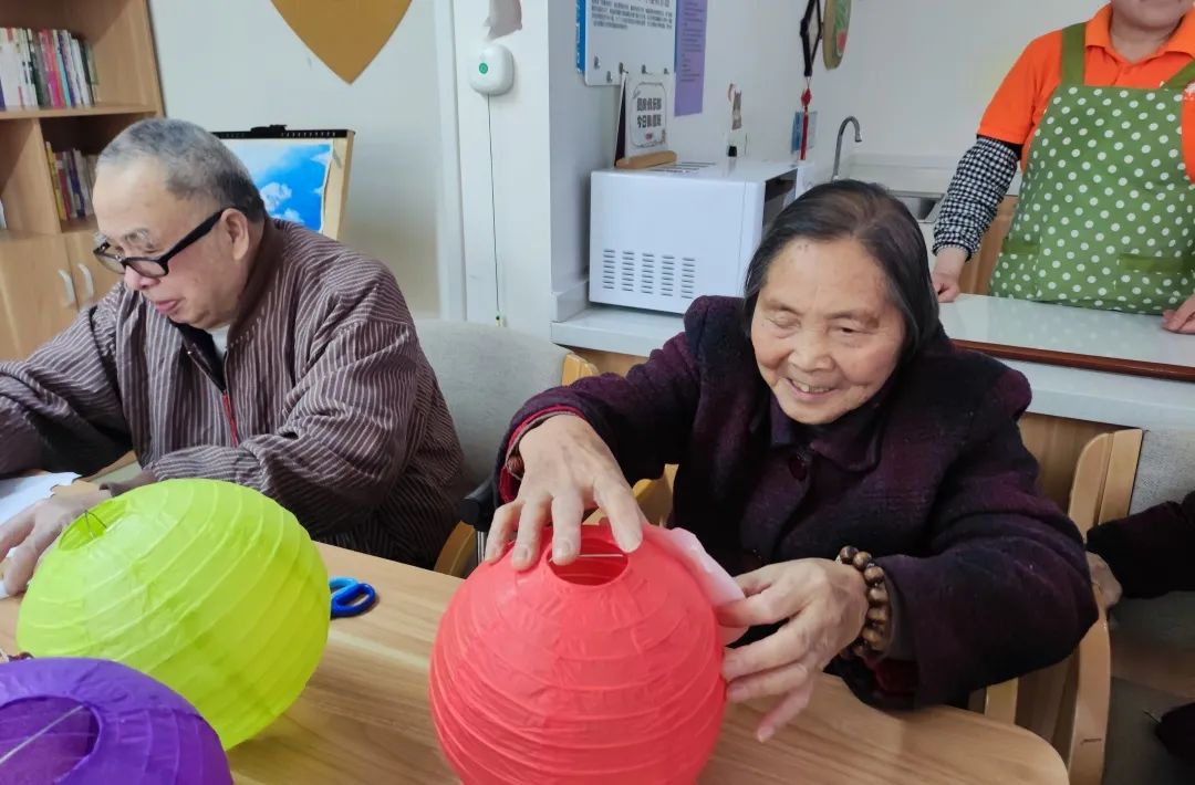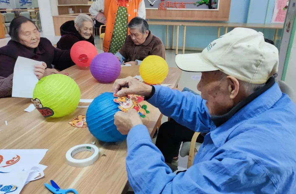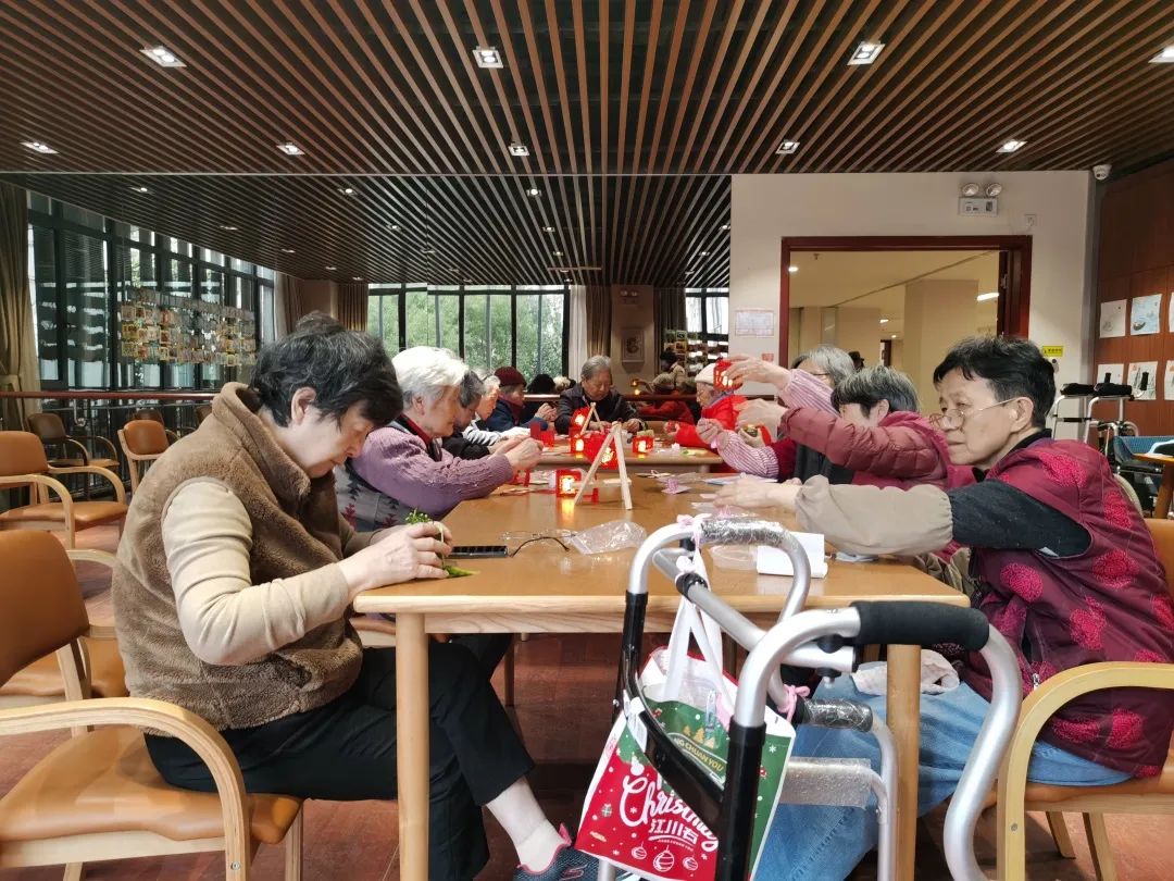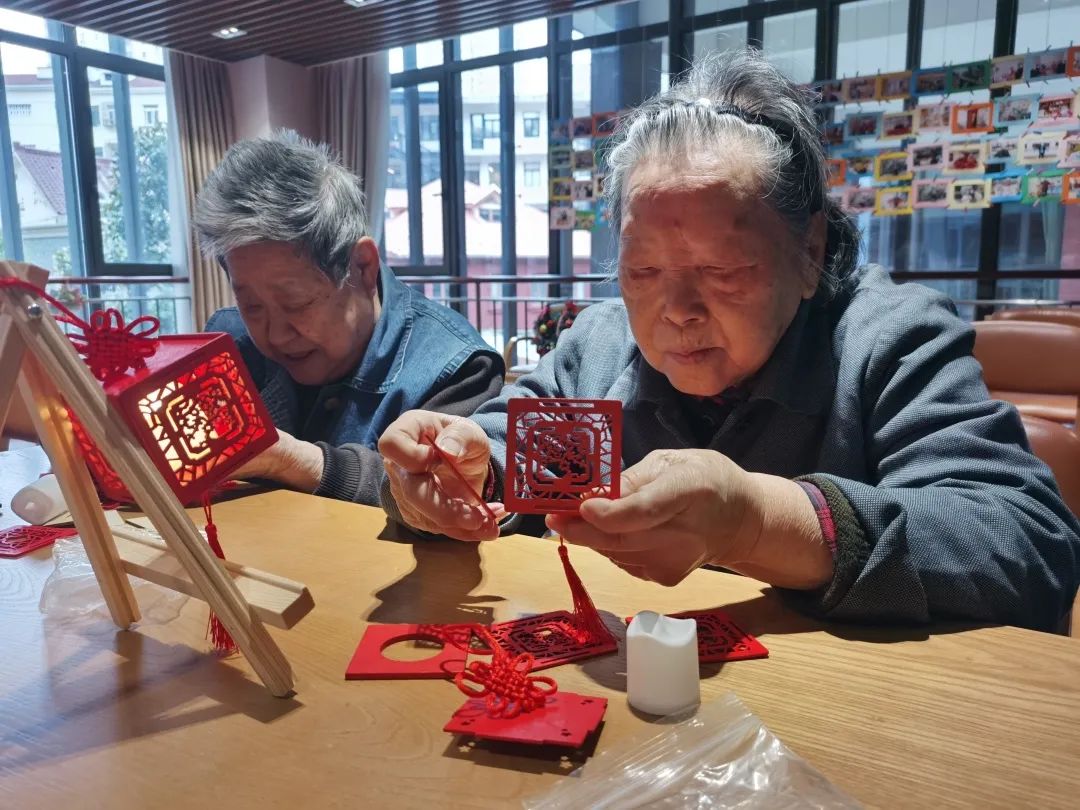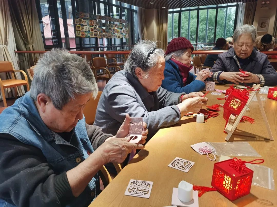 静安区恒裕曹家渡老年福利院长者们精心制作灯笼——认真仔细地木片对位,相互交流中互帮互助,在不断尝试中,一个个小灯笼在长者们的手中诞生。精致的灯笼烘托出了浓浓的节日气氛,传递着美好与温馨。