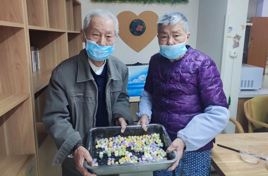 元宵节肯定少不了汤圆,长者们又动手做起了汤圆,这一次长者们将汤圆用各色果蔬染色,制作成别具一格的五彩汤圆。今年是虎年,为了应景,工作人员还特意指导长者们制作了氛围感满满的虎皮汤圆。长者们都惊喜地表示,没见过这样的汤圆!