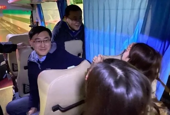 在前往目的地的过程中,大巴车上也充满了欢声笑语,一路上大家做着各种有趣的游戏。