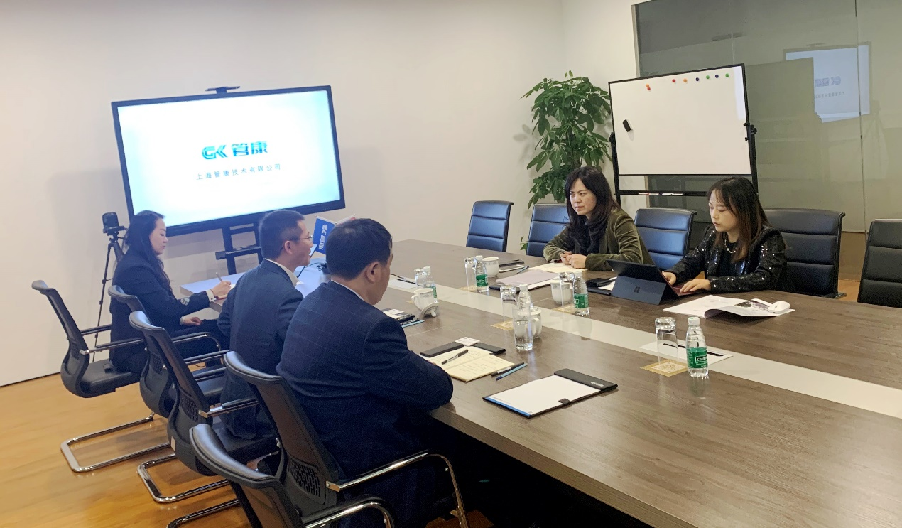 4月14日,中国化学工程第七建设有限公司(简称“七化建”)副总经理曹滢一行从四川远道而来,参观上海管康技术有限公司,洽谈相关合作事宜,恒实环能集团董事长汪健南、总裁何晓生、管康副总经理李才禧等高管热情接待。