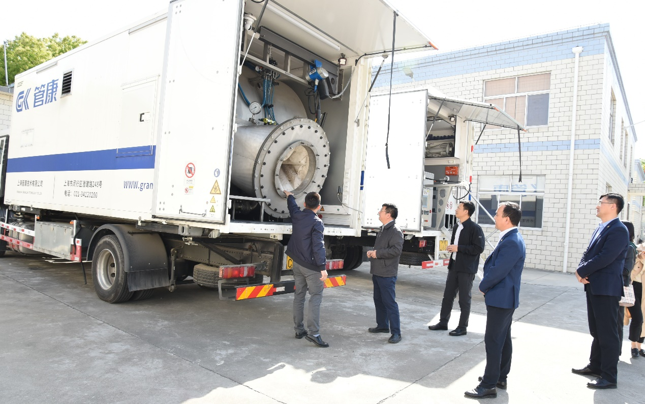 2021年4月19日,成都市环境科学学会理事长刘富忠、副理事长李炜等一行来访管康参观交流。管康副总经理张振华、市场总监高俊岩、研发总监吴盼、技术经理刘林热情接待。