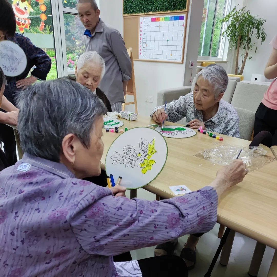 经过大家的精心绘制,一幅幅美丽的画面出现在眼前,爷爷奶奶们一边挥动着自己亲手制作的团扇,一边细细的欣赏着自己的作品,甭提有多开心了。