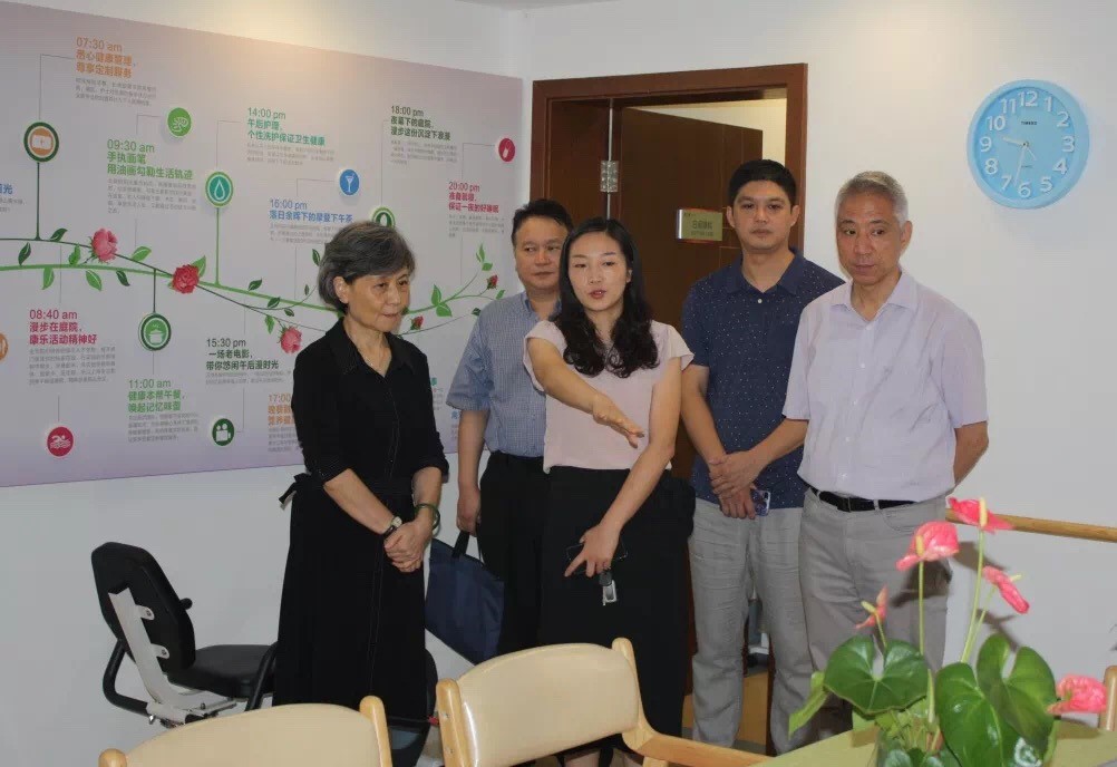 2018年9月18日,安徽省安庆市民政局叶林霞局长等一行领导来我院参观考察。华康健康副总经理张婕、朱斌,恒裕福利院副院长章颖星等人陪同参观,向领导详细介绍了院内发展现状、设备情况以及入住长者概况等。