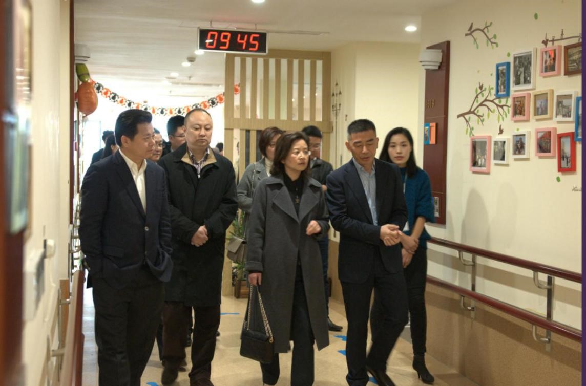 2018年11月29日,成都高新区甘副主任一行领导来我院参观考察。恒实集团董事长聂建明、集团旗下华康健康CEO王东峰等人陪同参观向领导详细介绍了院内发展现状、设备情况以及入住长者概况等。